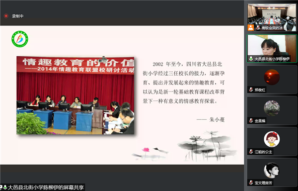 四川新闻网成都8月11日讯 朱小蔓教授一生致力于情感教育的理论与实践探索,学术成果斐然,享誉国内外。2021年8月10日,我国著名教育家、当代情感教育研究的开拓者和实践者朱小蔓先生逝世一周年,为进一步学习、传播和发展朱小蔓情感教育思想,由全国情感教育研究协作组主办的首届“面向未来:情感教育与人的全面发展”学术研讨会——朱小蔓情感教育纪念论坛在宝鸡文理学院教育学院召开。大邑县北街小学受邀参加了本次论坛并作了主题发言。