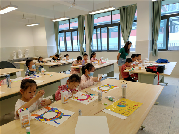 “谁要蓝色彩绘笔?”“老师,我涂上这个颜色可以吗?”……在美术班课堂上,孩子们稚嫩的声音不时在教室里响起。