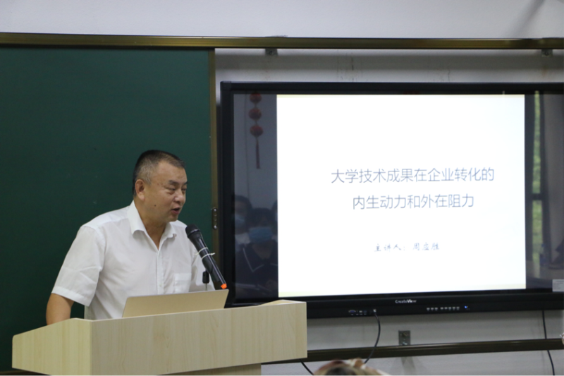 四川化工高级技工学校原副校长、四川省有突出贡献的优秀专家周应胜发表了“大学技术成果在企业转化的内生动力和外在阻力”主题演讲,对大学技术成果转化内生动力进行了详细的分析解读,揭示了内生动力的不足与局限,阐述了大学技术成果转化的现有模式和方式方法,提出了要以企业创新为主、校企合作攻关,走企业需求导向之路的校企创新创业新模式的新观点。对成都市建设科技中心城市、增强城市发展新动能提出了新的思路和路径参考意见。
