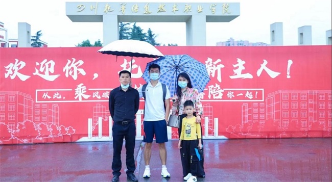 “一大早我们就从南充开车过来了,虽然提前知道了不能进校,但是还是决定送他去学校。”在学院南门口外,来自南充的家长陈先生从车里一边拿行李、一边打着伞,脚下放了个编织袋和一些日常生活用品。陈先生告诉学院记者,这是他家孩子第一次出远门,自己又不能进校,只能在门口隔会儿就给他孩子打电话,遥控指挥。