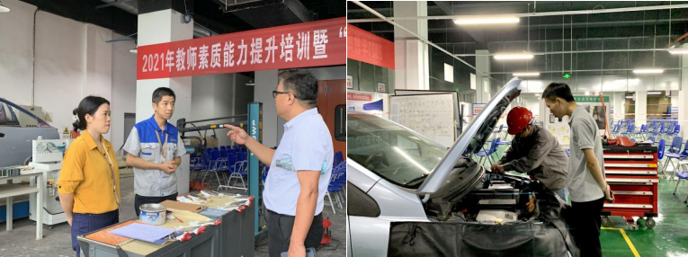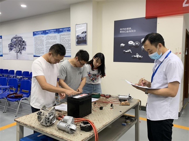 据悉,本次培训分为理论学习+实操考核。考核分为整车电气构造技术、汽车检测与故障分析、钣喷美班、电工班、新能源汽车班等五项,实行百分合格制,共32名教师参加。前期培训通过专家专题讲座、理实一体化教学和研讨等多种形式,重点提升参训教师在燃油车汽车元器件测量、“钣喷美”、三相异步电动机自锁电路的安装接线及新能源汽车故障诊断等能力,从而进一步促进省内汽车专业“双师型”师资队伍建设。