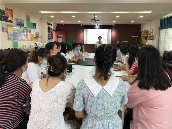 集团分管人事工作总务主任叶章丽讲解了集团制度,并就老师们最关心的职称和工资绩效方案进行了解读。柏水园区保教主任赵丹带领大家学习了《幼儿园教师专业标准》,将“师德为先,幼儿为本,能力为重,终身学习”16字烙印在新老师们的心中。大丰园区保教主任饶香芸通过互动研讨的形式带领大家明晰一日活动保教常规操作,提出幼儿园保教工作要坚持保教结合、保教并重的原则,做到既有分工,又有合作。本部园区保教主任王绍梅从什么是课程,什么是幼儿园课程,幼儿园课程的特质等方面,详细介绍了新繁幼儿园“活乐”课程方案,鼓励老师们要时刻拥有课程建设者的意识,将生活中重要的资源转化为课程,充分认识游戏是课程的重要组成部分,从教学设计走向课程设计,不断提升课程意识。新城园区保教主任彭秋荷围绕游戏的概念与内涵、游戏对儿童的意义、新繁幼儿园的游戏课程开展情况、游戏的指导策略等进行了深入浅出的介绍。强调了游戏是幼儿园的基本活动,要让游戏为儿童的学习与发展提供无限的可能性。高院园区保教主任张力玮通过实例,带领大家了解了如何做好家长工作,掌握与不同类型家长沟通的技巧与策略。