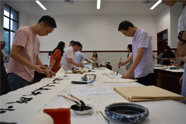 在活动现场,各位艺术家与学校教职员工进行了亲切交流,并兴致勃勃的创作了六十余件书画作品赠送给了校方,受到了全校教职员工的高度赞誉。此次活动的举办,为本区更好的营造中小学校良好的德育、美育文化教育基地起到了积极的推动作用!(陈凡坪)