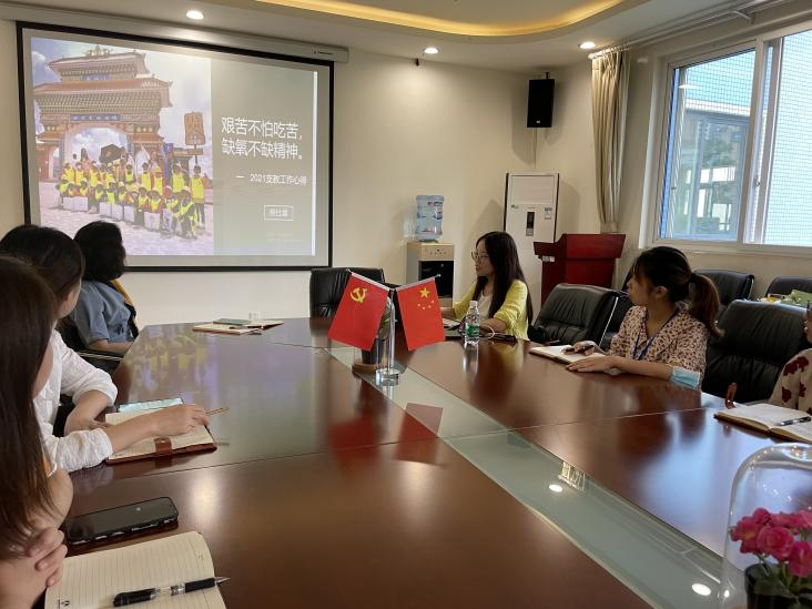 分享会上,熊仕蓉老师结合自己的支教经验和心得,以“艰苦不怕吃苦,缺氧不缺精神”为题,从“适应”“融入”和“实践”三个方面与老师们进行了支教工作经验分享与交流。