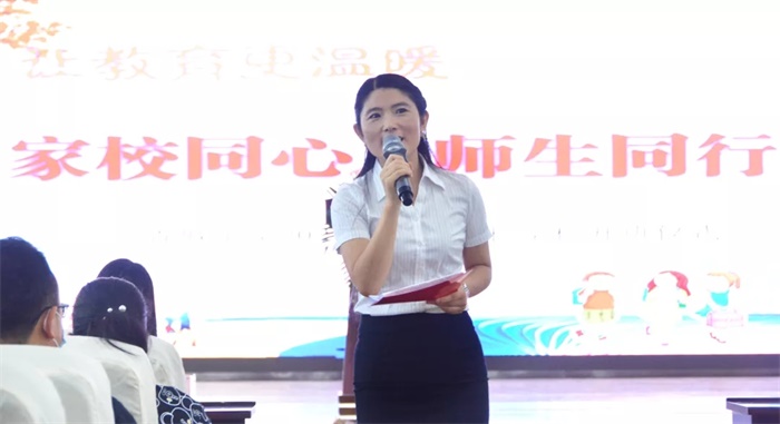 本次家长会由德育处副主任康燕担任主持,首先她为新生家长介绍了学校行政团队。这是一支敢挑重担、责任为先的行政队伍,在范桉敏校长的带领下,用有温度的教育为全校师生和家长服好务。学校行政团队与家长见面相识,温暖教育同盟从那一刻缔结成功。