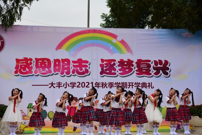 四川新闻网成都9月1日讯 快乐的暑假已经完美收官,哼唱着愉快的歌曲,我们又步入了一个新的学期。9月1日上午,大丰小学“感恩明志,逐梦复兴”2021年秋季学期开学典礼在激昂的国歌声中拉开帷幕。