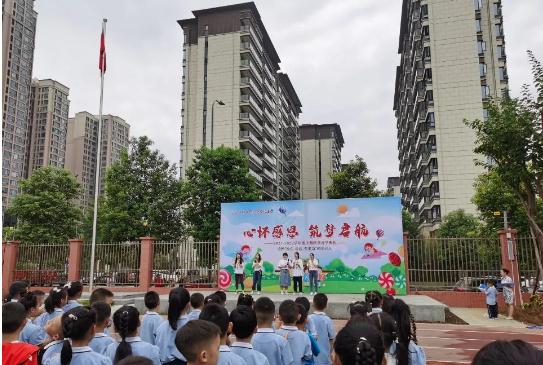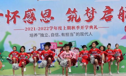 随着音乐声响起,由成大实小孩子们带来的开场舞为开学典礼拉开序幕。