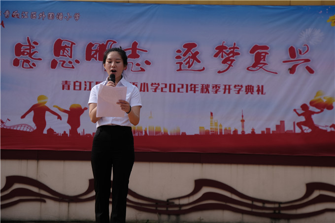 四川新闻网9月2日讯 金秋九月,丹桂飘香,又是一个收获的季节。9月1日,青白江外国语小学全体师生迎来了主题为“感恩明志 逐梦复兴”秋季开学典礼。雄壮的国歌声响起,五星红旗冉冉上升,全体师生肃立注目,仪式拉开了序幕。