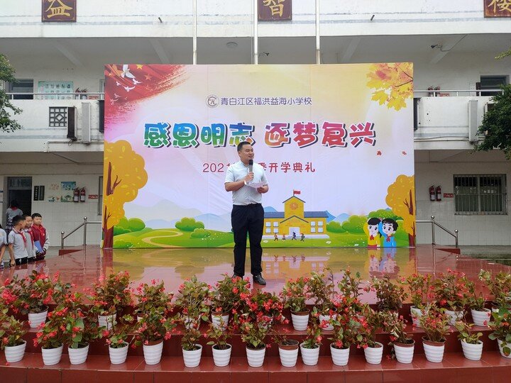 四川新闻网成都9月2日讯 秋风送爽,丹桂飘香。2021年9月1日上午,青白江区福洪益海小学全校师生齐聚在学校足球场,举行隆重的开学典礼,典礼在庄严的国歌声中拉开序幕。