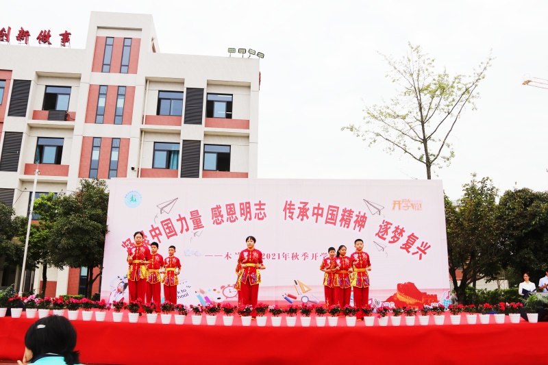 师生同台朗诵《致团结奋进的木中人》,宣告新学期木中师生将脚踏实地地追逐梦想。木兰中学韩娥武术队为同学们带来了精彩的武术表演,更展示了木中学子顽强拼搏的精神。木兰中学的新教师代表也带来了精彩的亮相演出。