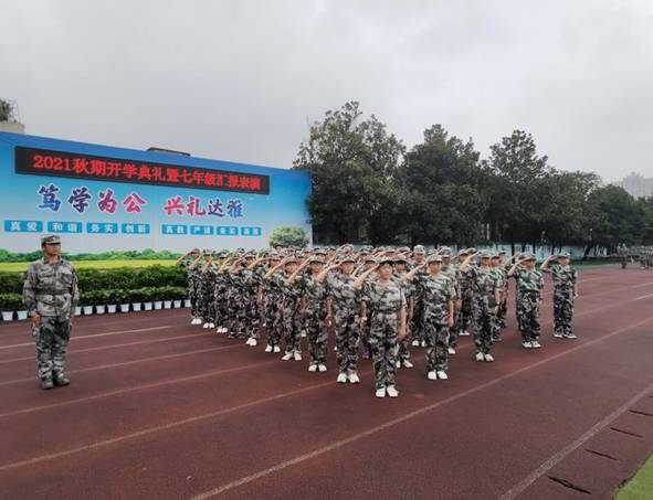 四川新闻网成都9月8日讯 未觉三夏尽,时序已新秋。为加强学生的国防意识,磨练学生的意志品格,培养学生吃苦耐劳、团结拼搏、勇于进取的奋斗精神,公兴初中开展了为期五天的初一新生军事综合实践,并举行汇报表演。