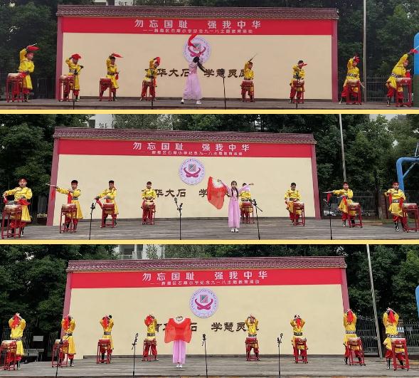 5.5中队带来诗歌朗诵《勿忘国耻 振兴中华》和歌舞《精忠报国》。