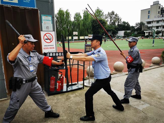 曾警官一行对学校的人防、物防、技防开展检查督导,包括校园消防设备、应急逃生窗口等,并对门卫处人员出入记录、监控设备运行及安保人员履职情况进行查看。检查过后,曾警官考察了安保人员防暴应变能力,并再次进行现场指导教学,进一步提高安保人员的防控守卫能力,要求力争做到对师生的人身安全负起责任,维护学校正常教学秩序。(李季 邓林钢)