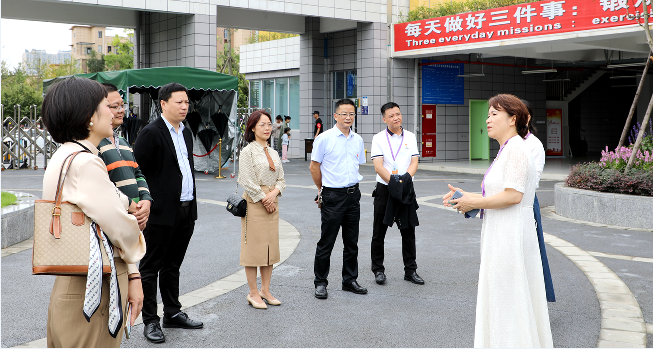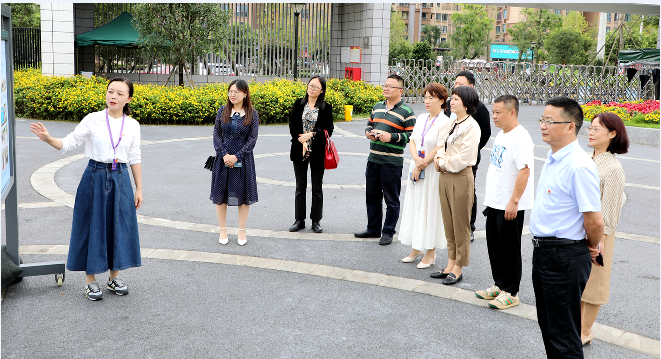 随后,鄢光文校长陪同大家来到了东大街一小走课联盟学校——花都小学。“让每一朵花儿都精彩绽放,让每一个生命因教育而美好”,充满浓浓爱意的育人目标,整洁雅致的校园,让一行人一进校园就感受到了学校的美好与温度。刘秀荣校长和黄萍副校长就花都小学“校地开放 体教融合”“影子校长 家校携手”“校际走课 历练队伍”和大家进行了简短的交流,年轻的花都给联盟学校留下了深刻的印象。