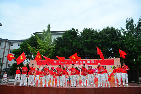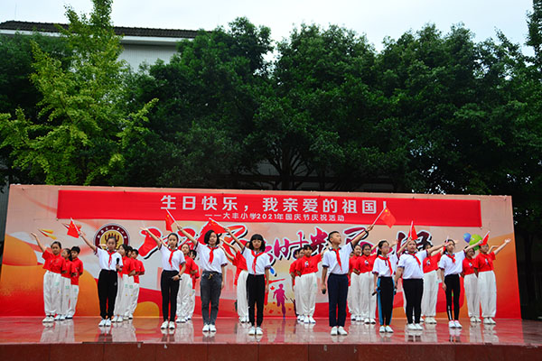 四川新闻网成都9月27日讯 为弘扬爱国主义精神,激发师生的爱国热情,提升凝聚力和向心力,在国庆节到来之际,新都区大丰小学举行“生日快乐,我亲爱的祖国!”迎国庆主题升旗仪式。