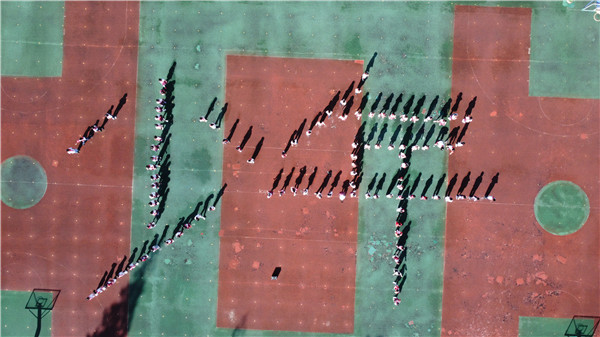 9月30日上午8:00,一架航拍飞机划过学校上空,伴随着“少年智则国智,少年富则国富,少年强则国强,少年自由则国自由”的呼号声,中心校区二年级100名少先队员在操场上排成“少年”两个字队形;三元校区三、四、五、六年级分别在校园开阔地带排成“中国、少年”四个字队形,意喻:丰小少年向中国共产党成立100周年献礼,祝贺祖国母亲72岁生日快乐!9时整,大丰小学全体师生唱响《我和我的祖国》。学校师生以歌声寄托感恩之情,深切的表达了对祖国母亲的祝福。