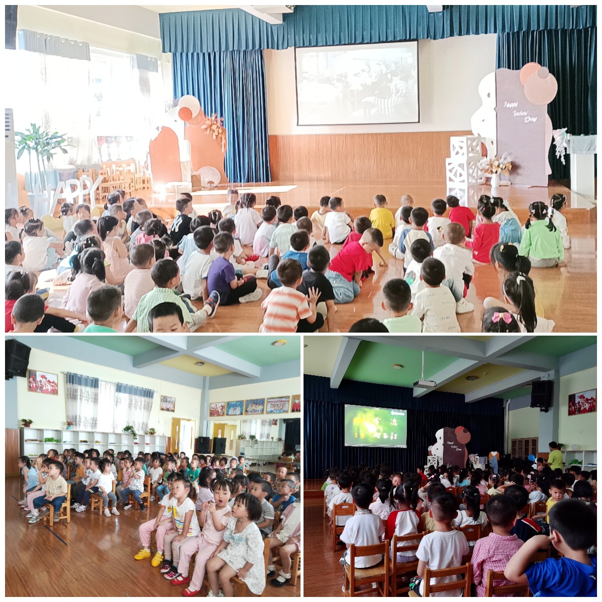 孩儿们在老师的带领下分年级组观看了《渔童》《红领巾》《鲤鱼跳龙门》三部爱国主义动画电影,萌发幼儿了热爱祖国、热爱传统文化的情感。