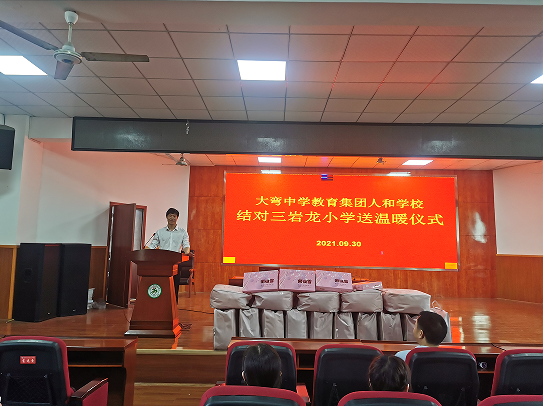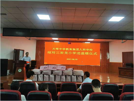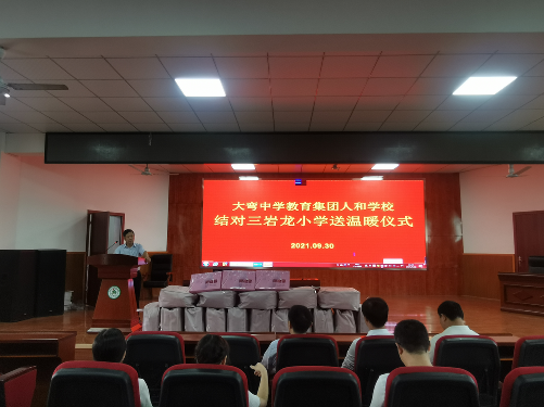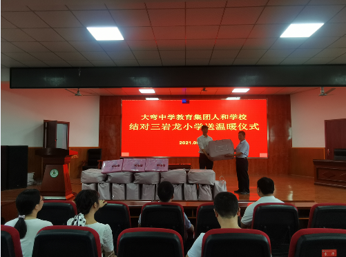 四川新闻网成都10月8日讯 为贯彻落实省市区文件精神,切实帮扶改变涉藏工作地区教育面貌,推进教育均衡发展,推进人和学校教育教学工作。2021年9月30日下午,人和学校校长庄福贵、副校长陈吉金、工会主席刘国庭以及其他教师代表在道和讲堂参加了该校结对三岩龙小学的送温暖仪式。