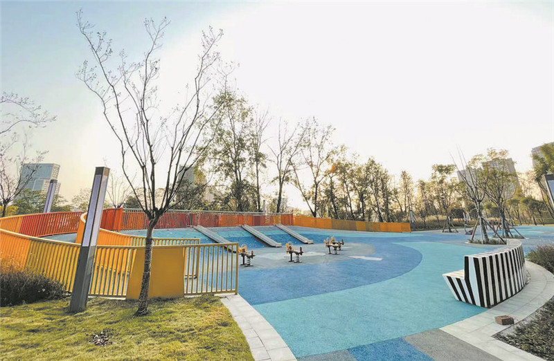 傍晚时分,毗河绿道·悦动活力公园周边的居民纷纷走出家门,来这里运动健身、漫步聊天。不远处的游乐场传来孩子们阵阵欢快的笑声。当地居民们称,以前这里是一片荒地,公园建成后成了大家都爱去的地方。