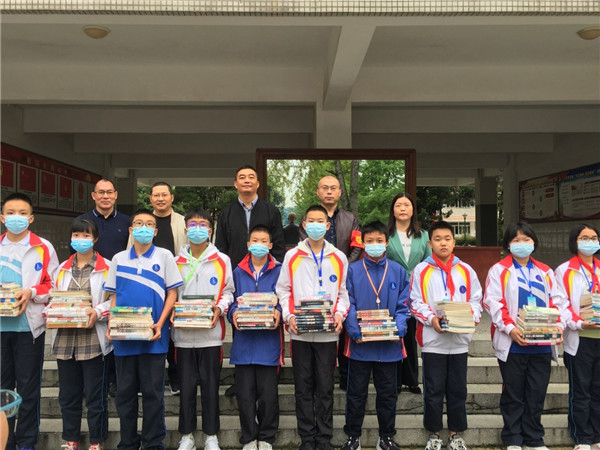 最后,廖家中学校罗勇校长、袁定辉副校长、陈勇副校长、李自清主任和杨萍主任为各个班分发了部分图书。