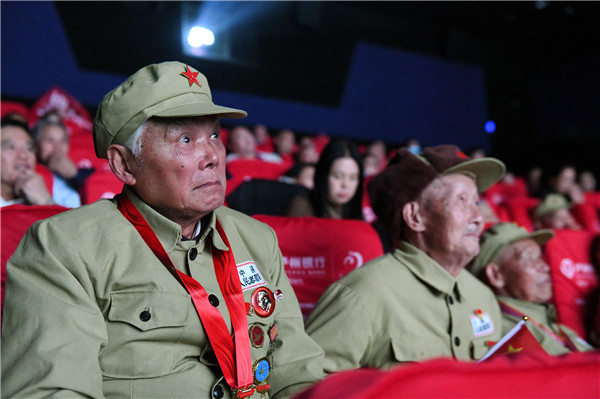 几名抗美援朝老兵更是眼含热泪,“我参加过上甘岭战役,当年战斗很惨烈,子弹在耳边飞,炮弹在身边炸,我好多战友都牺牲了,今天的幸福来得不容易,是无数人用鲜血换来的。要教育年轻人牢记历史,珍惜现在幸福生活。”观影结束后,一直挺着身子看完电影已经90岁的老兵郑洪兴激动地说。