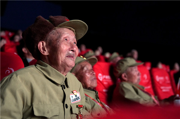 据悉,观影前,老兵们在自己的座位上与大家一起合唱《中国人民解放军军歌》,“向前!向前!向前!我们的队伍向太阳!……我们是一支不可战胜的力量!”的歌声回荡在放映厅中。胜利来之不易、和平来之不易、幸福来之不易。