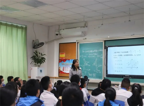 刘老师在《反比例函数的图像与性质(2)——几何意义》教学过程中,引导学生在不同图象上取特殊点,逐步探究,最终找到了反比例函数上任一点向x轴、y轴作垂线与坐标轴所围成的矩形面积与K的关系,带领学生经历了猜想和证明,体会了数学中从特殊到一般的思想方法,培养了学生严谨的科学态度。刘老师注重知识的生成和发展,紧扣中考,步步引导、层层设问,点燃了学生学习热情。