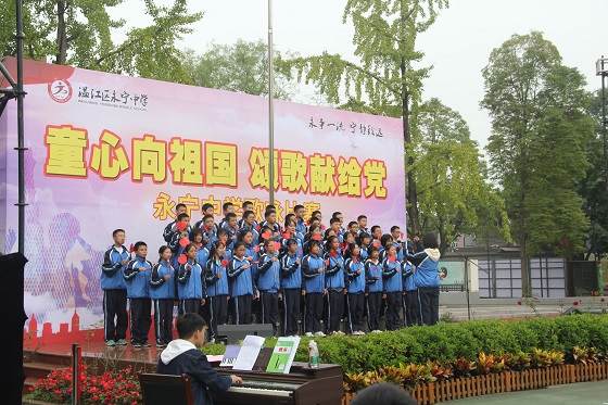 四川新闻网成都10月15日讯 金秋送爽,万里河山披锦绣;丹桂飘香,高歌欢唱寄深情。为厚植爱国主义情怀,丰富学生课余生活,增强班级凝聚力,10月13日下午,永宁中学在大操场举行了以“童心向祖国,颂歌献给党”为主题的歌咏比赛。