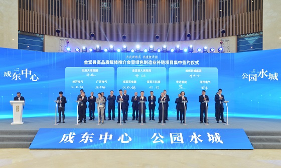 四川新闻网成都10月15日讯 成东中心、公园水城,金秋十月的淮州新城风景如画,宛如“太阳神鸟”般的地标性建筑——淮州国际会展中心矗立于千里沱江之畔。10月15日,“共筑新格局·共建经济圈”金堂县高品质载体推介会暨绿色制造业补链项目集中签约仪式在这里举行。