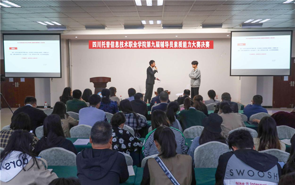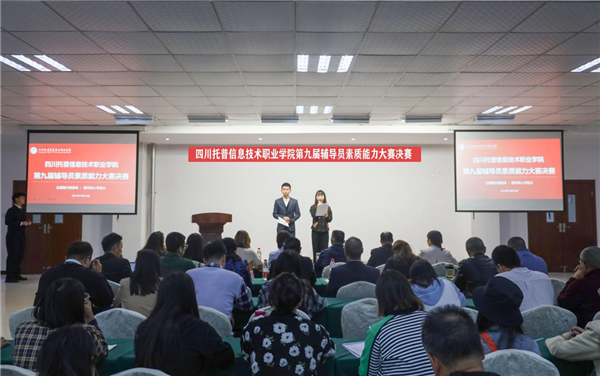 四川新闻网成都10月15日讯 近日,四川托普信息技术职业学院第九届辅导员素质能力大赛决赛落下帷幕,来自学院各系部的10位辅导员通过笔试、案例分析、政策宣讲、谈心谈话四个环节进行了比拼。集团教指委副主任李能武、汪成慧,学院党委书记沈邦兵、学院副院长章倩倩出席大赛,各系部学生工作副主任及全体辅导员观摩比赛。为保证比赛的公平公正性,学院院办、党办、学生处、就业处、继教部、团委、国际部负责人共同担任本次比赛的评委。