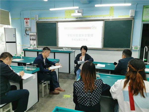 首先,由分管实验工作的副校长涂滨传达成都市教育局文件精神,并宣布了学校关于此项工作的具体工作方案。建立以校长杨涛为组长的学校实验室安全工作领导小组;落实实验室安全管理责任;梳理学校实验管理规范。分管安全工作的副校长巫文勇强调:实验室教师一定要加强专业知识的学习,提高应变处理能力,同时加强学生的安全意识、培养良好的操作习惯。
