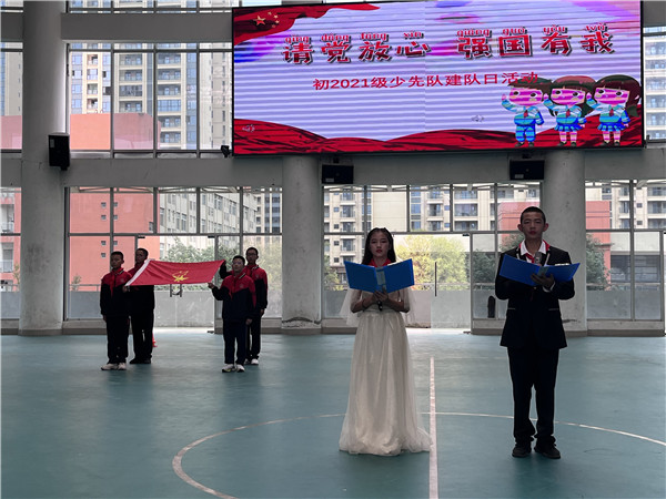 初2021级师生组织开展了庆祝中国少年先锋队建队72周年暨“请党放心 强国有我”主题队日活动。活动伊始,全体同学昂首挺立,庄严肃穆,以饱满的热情高唱队歌《我们是共产主义接班人》。在慷慨激昂的队歌声中,本次主题活动正式拉开序幕。随后,同学们跟随视频回顾了中国共产党风雨兼程、披荆斩棘的百年历程。少先队员们通过深入了解党的历史,领悟了党的精神,坚定了永远跟党走的信念。在邹唐翛然、敬睿鹏、王文晴、万奕等四位同学的领诵下,全体同学重温了“七一”共青团员和少先队员代表的集体献词——《请党放心强国有我》。活动最后,少先队员们还参加学校组织的拔河比赛。(邓林钢)