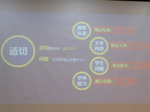 黎炳成老师以“语文课堂教学是求新求深吗”为开端,指出教学的实质是“适切”,即适合贴切的才是最好的。从而围绕什么叫“适切”、为什么“适切”和怎么做到“适切”展开教学研讨。