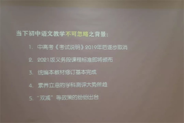 为什么要“适切”? 黎老师从中考答题、日常听课、现实背景几方面谈到了“适切”的必要性。在教学和双减政策双重问题下,适切的关键就在于运用教学理性帮助学生解决问题,提升思维的教育培养。在教学方面,黎老师提出了“七部曲”方法以提升语言品析的细化能力,引起了老师们的深思。而教学活动中重复机械类作业太多和课堂教学问题也需要继续改进,黎炳成老师反复提到“教材是最熟悉的陌生人”,这意味着文章思维梳理很重要。