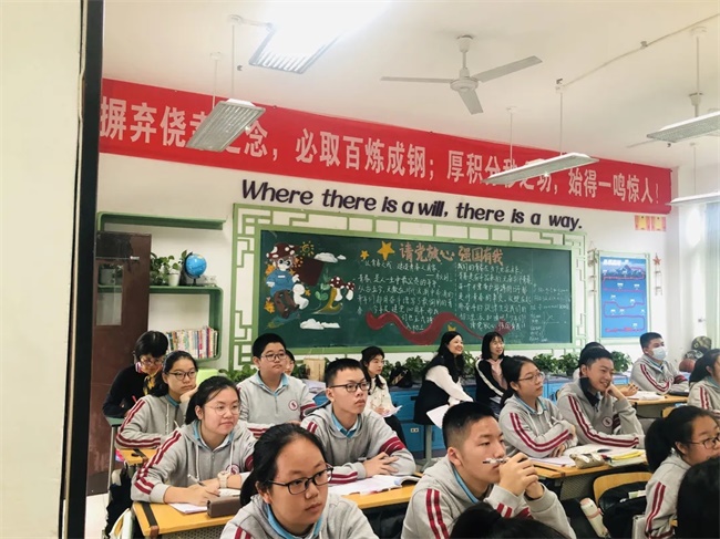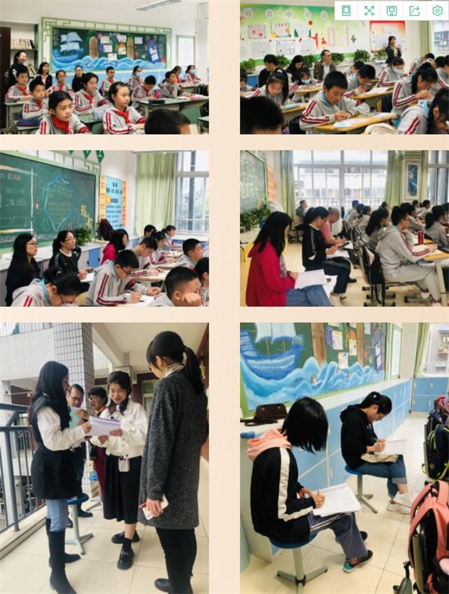陈坦老师及赵雪菲老师等,跨学科学习考察。陈坦老师指出,石室联中班级管理工作良好,教室整洁;课堂教学收放迅速,教学节奏把控良好;教师基本功扎实,面对临时听课,有条不紊,教态自然。