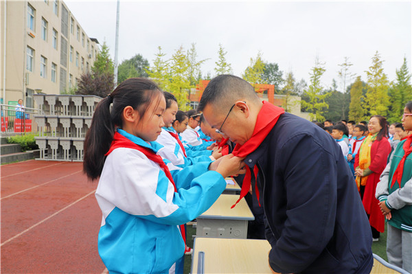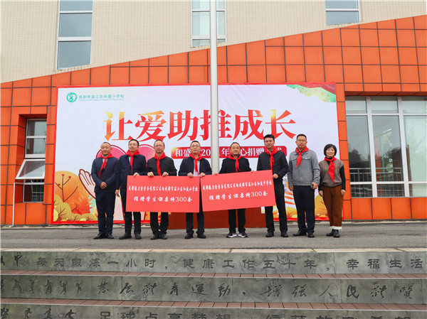 捐赠仪式前,优秀少先队员代表向参会领导及企业代表敬献红领巾,随后爱心企业董事长余军分别向和盛镇小学和中学进行捐赠交接,和盛小学校长汤全作为代表致辞表示,感谢臻力鑫劳务有限公司的善举,感谢他们对学生的关心和爱护;并教育学生要把滴水之恩化作自强不息、奋发学习的动力,化作克服困难、知难而进的勇气。希望学生要用优异的成绩,报答父母的养育之恩,报答老师的教育之恩,不辜负社会各界的殷切期望。