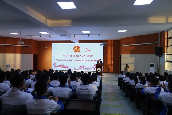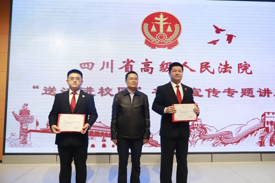 四川新闻网成都10月18日讯 在成都二十中于9月中旬举行的“法制教育月”即将进入收官总结之际,为了增强大同学子法治素养,培养知法、懂法、尊法、守法意识,加强“法制教育月”的宣传效果,成都二十中特聘四川省高级人民法院政治部组织人事处副处长孔云峰同志担任校“法制副校长”,刑一庭法官助理王政义同志担任校“法制辅导员”。2021年10月15日下午,成都二十中为他们举行了聘书颁发仪式,同时他们做客《大同讲堂》,为高中学生作了生动形象、印象深刻的法制教育讲座。