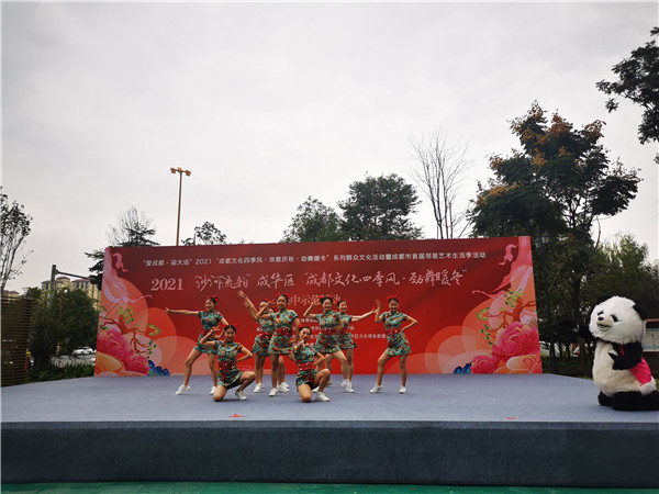 四川新闻网成都10月18日讯 10月18日、19日下午,“爱成都·迎大运”2021“沙河流韵”成华区“成都文化四季风·欢歌庆秋·劲舞暖冬”集中示范活动成华区白莲池街道蓝客城广场举行。此次活动区文化体育和旅游局主办,成华区文化馆、成华区文化志愿者协会承办、成华区文化馆各街道分馆协办。