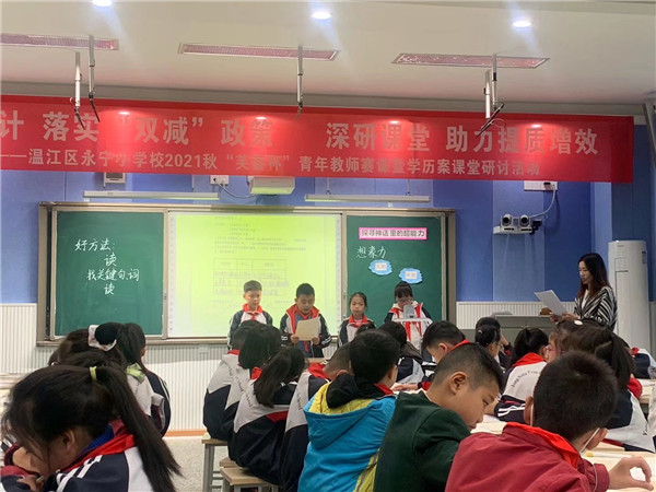 四川新闻网成都10月21日讯 10月19日,秋意正浓,温江区永宁小学四年级和五年级语文教研组拉开了青年教师芙蓉杯赛课暨学历案研讨活动的序幕。