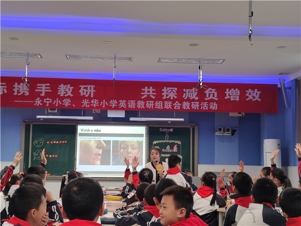 四川新闻网成都10月21日讯 10月20日上午,为进一步落实“双减”,让课堂提质,使作业增效,温江区光华实验小学英语组与温江区永宁小学英语组开展了一次联合教研活动。两校领导和英语组全体老师在未来教室参加了本次活动。