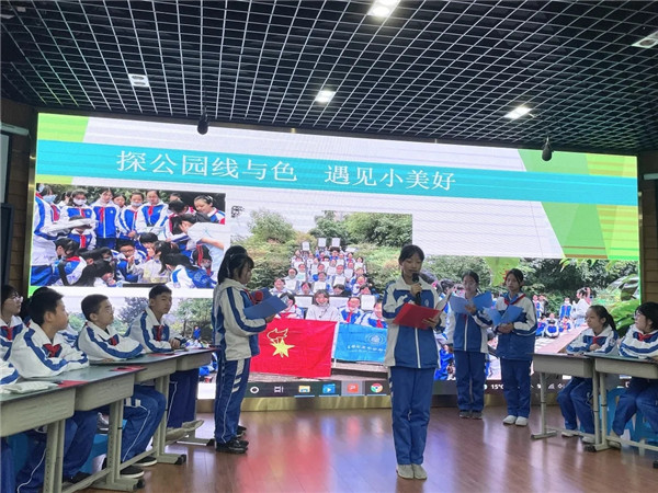 一园一特色,一园一景观,人城和谐。从逛公园课程结业的学姐学长们为初一年级刚进入逛公园课程的学弟学妹们分享自己在这门课程中的所学所得所获,从生物、地理、美术等多学科出发,分别分享了:活水公园、沙河公园、成华公园、熊猫基地、新华公园。然后陈艳红、杨丽媛、谭雅梅老师结合大熊猫国家公园的提出为背景,从识大熊猫、画大熊猫、融大熊猫、探大熊猫四个板块做了公园课程学科融合活动的前置学习。