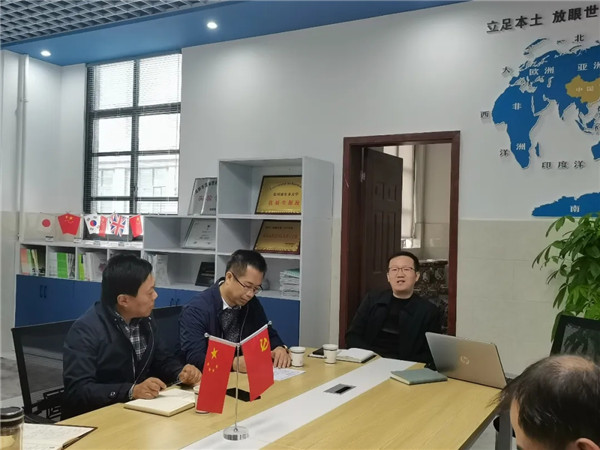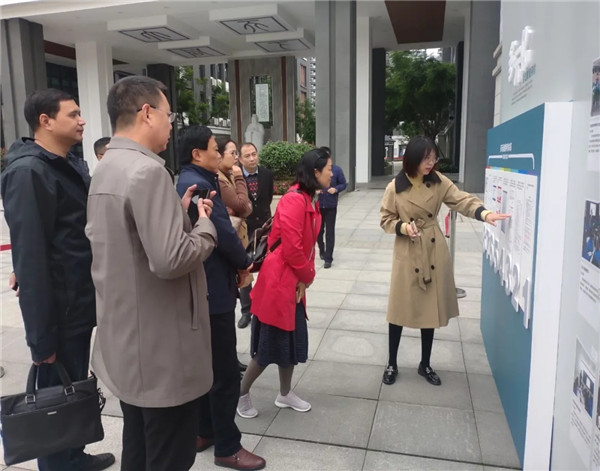 学校副校长杨关键,以及教科室主任劳承刚一行陪同参观交流,科研助理顾娜进行参观解说。
