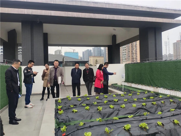 来宾一行来到学校屋顶“科技农场”,劳动教育专职教师程志均对科技农场作了详细介绍,同时进行了演示。