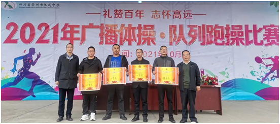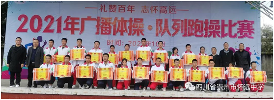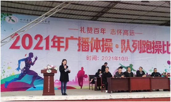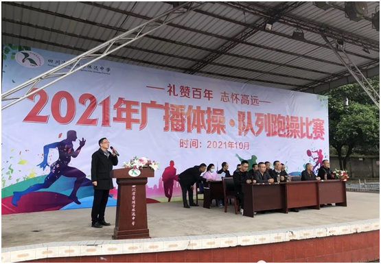 四川新闻网成都10月25日讯 为了不断提高学生体质健康水平,大力推进阳光体育活动,树立新时代中学生蓬勃向上、积极进取的精神风貌,2021年10月22日上午,崇州市怀远中学举行了以“礼赞百年 志怀高远”为主题的广播体操暨跑操比赛活动,全体校级领导出席了今天的比赛。