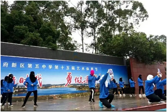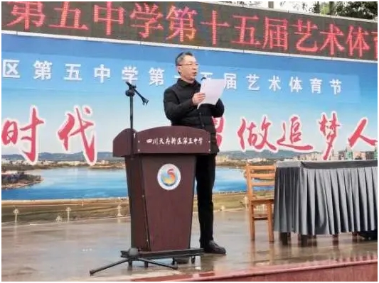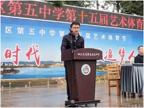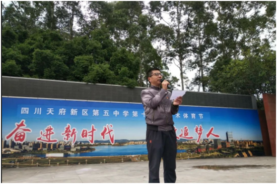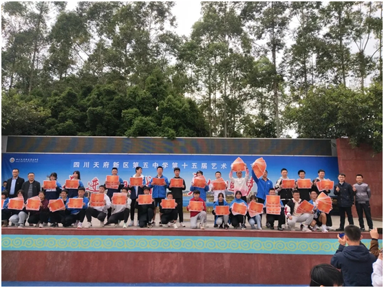 10月22日下午4:30,四川省天府新区第五中学南校区的运动场上,金风拂面,秋日斜照,彩旗高扬,欢声阵阵,邱斌副校长致闭幕辞,举行团体项目颁奖仪式,第十五届艺术体育节圆满落下帷幕。