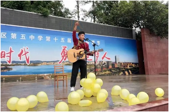独唱、合唱,情歌、RAP,古风曲、英文歌,真的是五光十色,异彩纷呈,令人大饱眼耳视听之福。精彩的表演受到全校师生的热烈欢迎,歌迷们纷纷冲到台前,为心仪的歌手献上鲜花和彩球,诺大的运动场变成了一片欢乐喜庆的海洋。