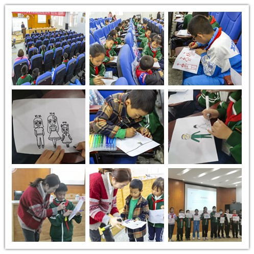 讲座之后,小高老师跟孩子们玩起了有趣的互动游戏。随着游戏“拍拍操”的热身,场内气氛更加活跃了,孩子们纷纷站起来跟着小高老师动了起来,大家脸上洋溢着轻松愉快的神情。热身游戏迅速拉近了小高老师与孩子们的距离,孩子们拿出画纸,画出了最爱自己的家人们。画你所想,画你所爱。看着孩子们认真的表情,再看看孩子们笔下的那一张张画纸——和蔼慈祥的奶奶、高大严肃的爸爸、美丽温柔的妈妈……全都跃然纸上。十分钟后,小高老师邀请孩子们分享自己的画作。孩子们讲诉着他们图画里的人物和故事,讲述着他们的家庭,也讲述着他们的思念,甚至还有孩子在讲故事的时候忍不住流下幸福的眼泪来。