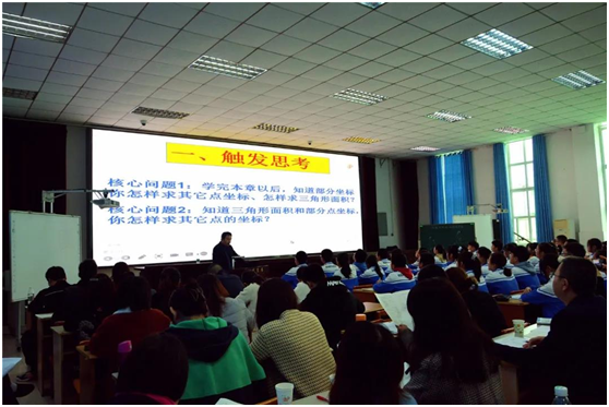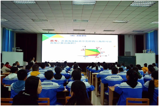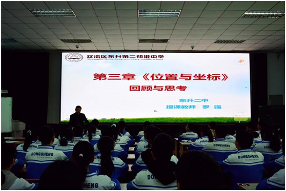 教研活动分为两个阶段。首先是东升二中的罗强老师和公兴初中的郭小丽老师就《第三章位置与坐标回顾与思考》教学主题展开同课异构课堂教学活动。两位老师从不同的角度展示了两堂精彩的复习课。