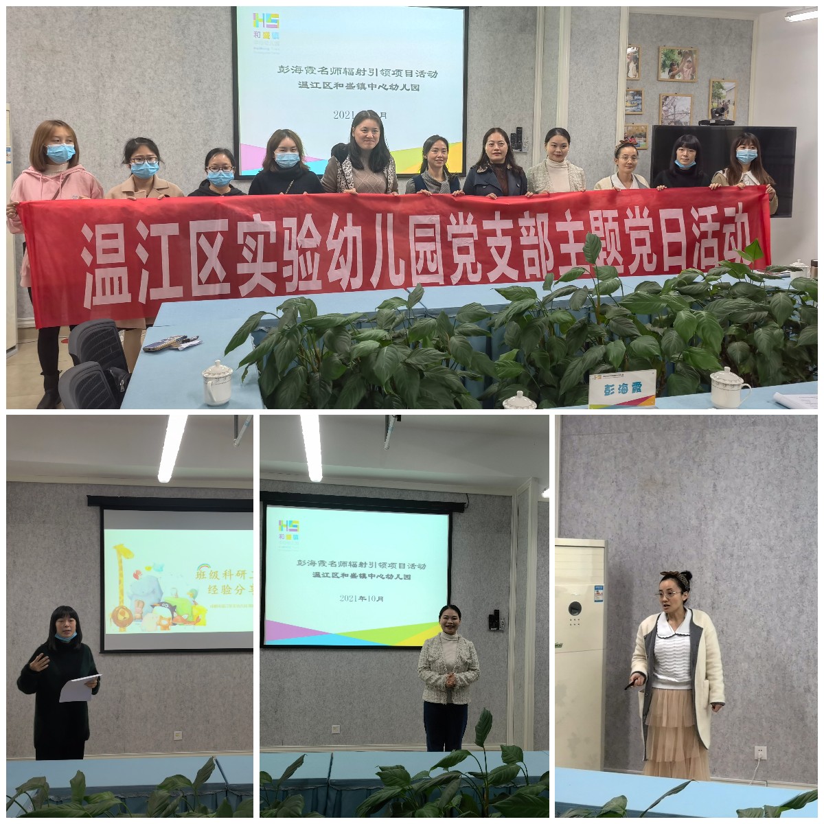 四川新闻网成都10月26日讯 课题研究是幼儿教师提升理论储备、提高科研水平、促进专业发展的有效途径之一。为营造浓厚的科研兴教氛围,促进教师专业成长,助力幼儿园软实力的提升,10月25日,彭海霞名师辐射引领项目活动在温江区和盛镇中心幼儿园进行。活动通过教师分享、座谈会答疑等方式,对该园课题研究中的疑难问题进行了深入的探讨。