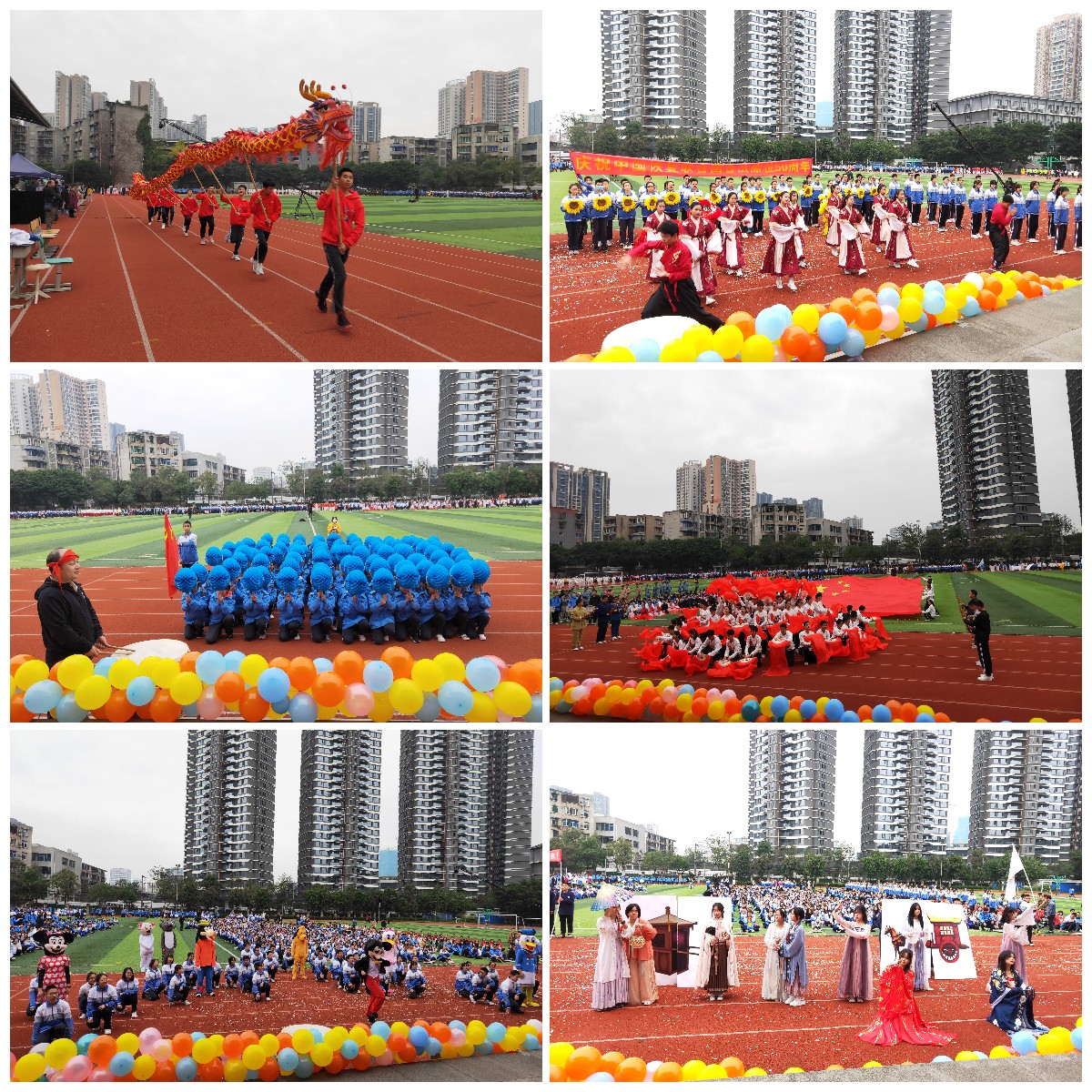 看!初二年级学生的党史篇表演——“砥砺前行,伟大复兴”,展现了中国共产党人的精神谱系,代代相传,生生不息;初三年级学生的成就篇表演——“守正创新,成就辉煌”,展示了新中国在“两单一星”、载人航天、恢复联合国合法席位以及加入世贸等方面取得的成就;高一年级学生的考验篇表演——“同心协力 力克时艰”,则通过抗击金融风暴、地震洪水、非典新冠等典型事件的再现,展现了中华儿女不怕困难、众志成城、风雨同舟的伟大精神;高二年级学生的变化篇表演——“发展变迁 民生幸福”,则展示了中国人民在党的领导下,生活发生翻天覆地变化,迎来了从站起来到强起来的历史性飞跃;最后,初一年级、高三学生联合进行了献礼篇表演——“同心筑梦 强少年体魄”,展现了中华儿女“冲出亚洲,走向世界”的体育强国梦想;“同心筑梦,开创新时代”,展现了在党的旗帜下,一代代中国青年把青春奋斗融入到党和人民的事业,为共产主义事业而奋斗,不忘初心,不负韶华!